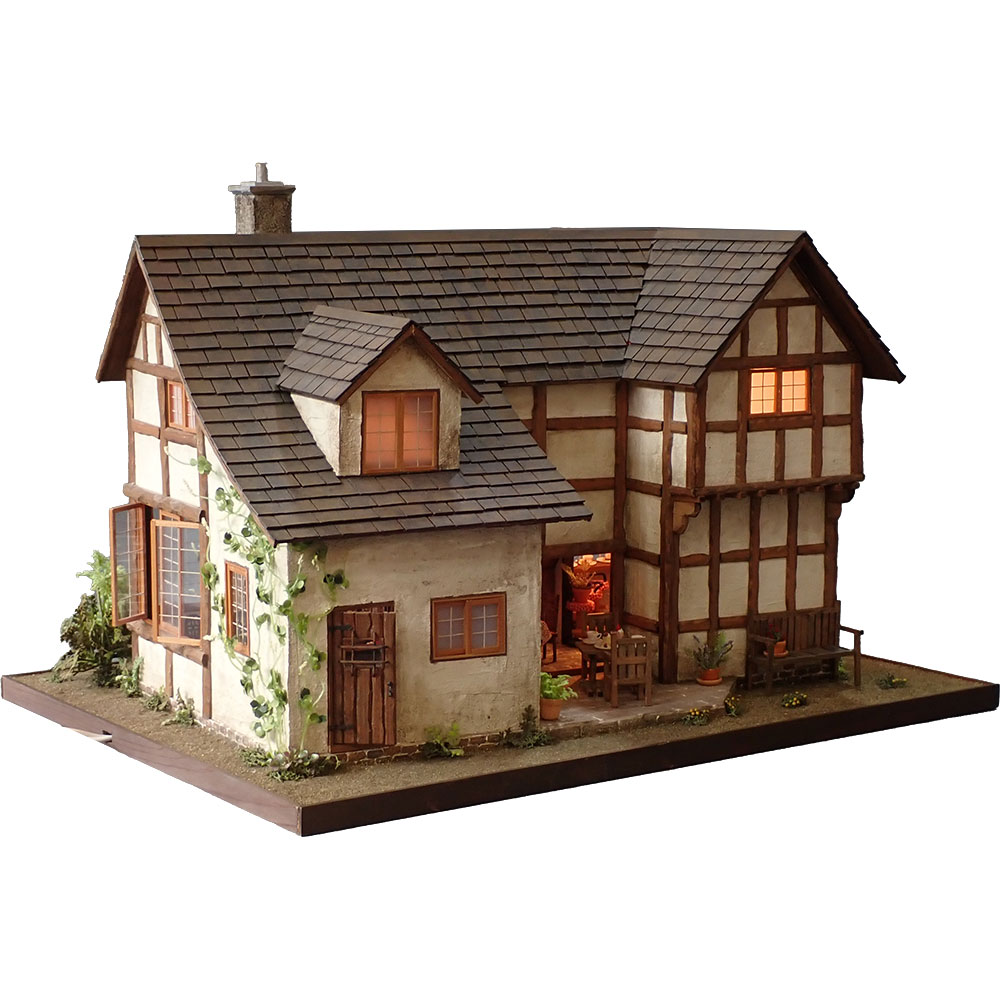 Beautifully half-timbered, this miniature cake shop looks like it came out of a picture book.