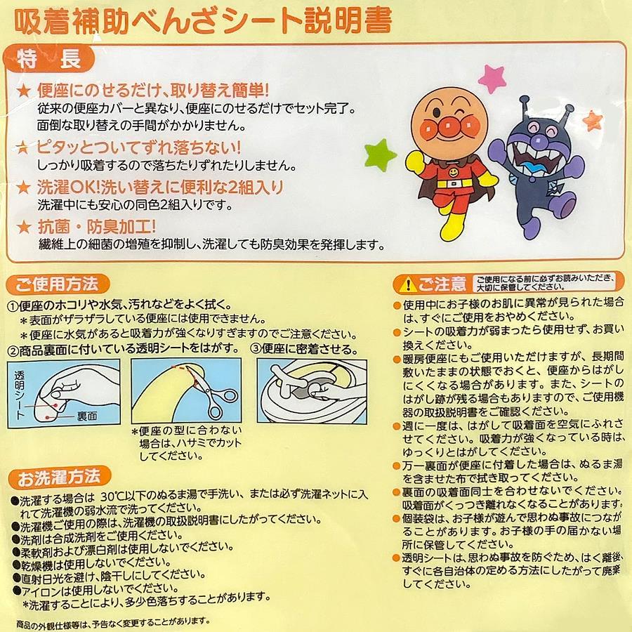 3営業日以内に発送≪新品未開封品≫:レック アンパンマン 補助べんざ用シート 2組入 吸着タイプ ( 抗菌 防臭 加工 ) おまる対応 洗濯OK 便座カバー 便座シート BB-357
