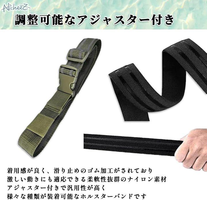 アジャスター付きで汎用性が高く様々な種類が装着可能なホルスターバンドです。