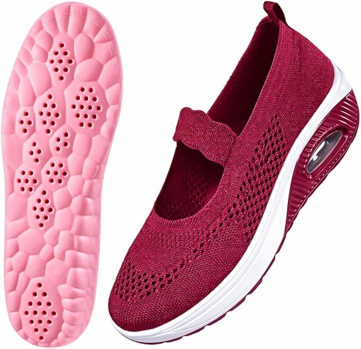 Women's Walking Shoes with Air Cushioning, Mesh, Breathable, Lightweight, Slip-on, Wide Fit, Shock Absorption, Suitable for Nurses, Walking, and Standing Work, Includes Replacement Insoles