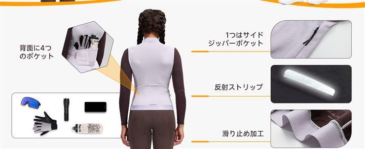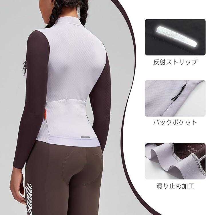 前傾姿勢や腕を前に伸ばす自転車を考慮し、背中を長くなって、肩周りをストレッチに作られています。