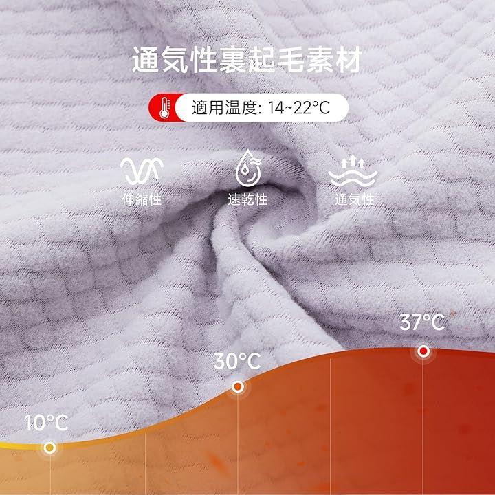 「通気性裏起毛素材」外部は防風生地、裏地は暖かい裏起毛素材で、肌触りが柔らかく保温性に優れると同時に,適度な通気性を確保して蒸れを防ぎます。