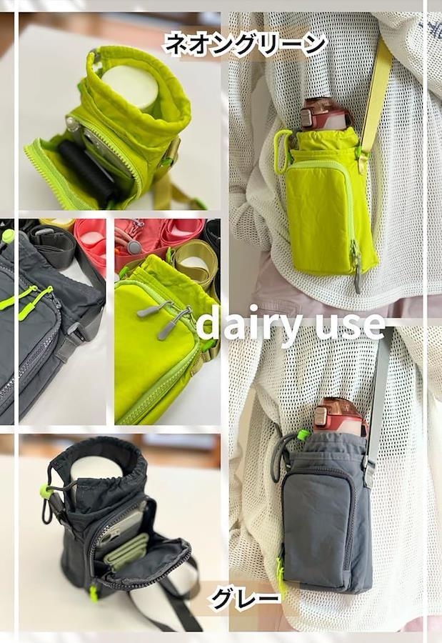 スマホとお財布、水筒などをパッと入れて使える便利なちょうどよい容量です。