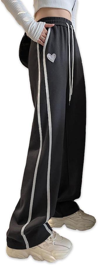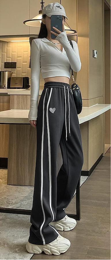 サイドからフロント側への2本のラインとワンポイントのハートが可愛いアクセントになっているレディーススウェットジャージです。