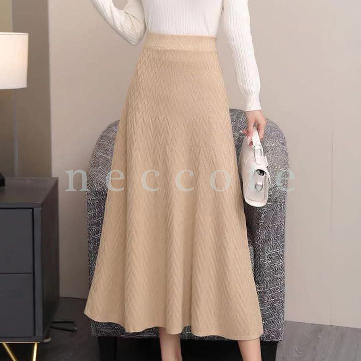 Women's skirts, long skirts, knee-length, mid-calf length, knit skirts, cold weather, formal, A-line, flare