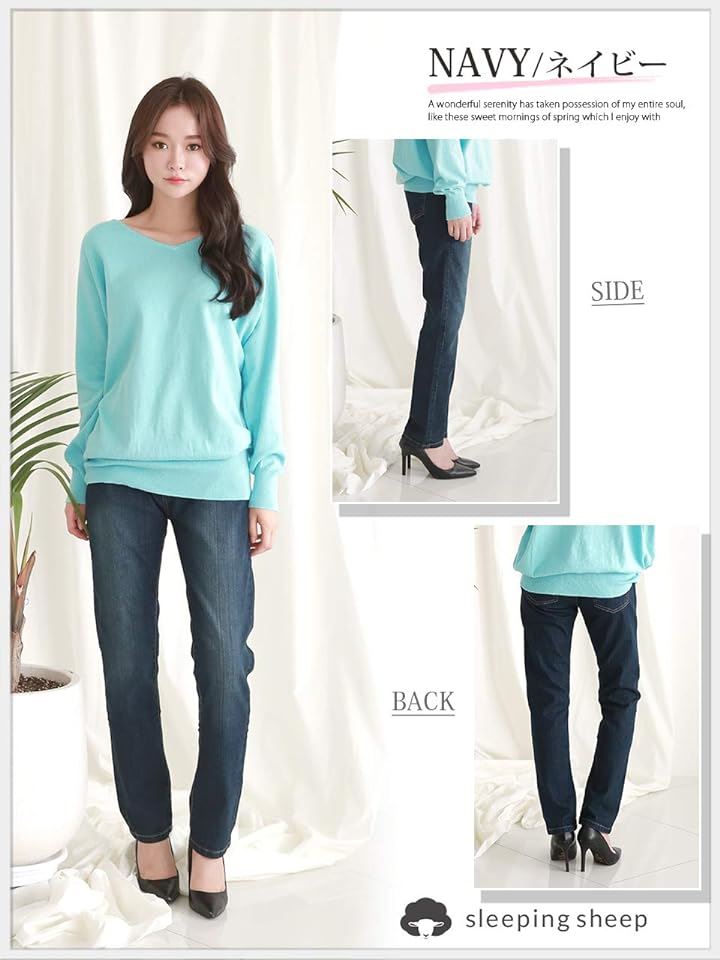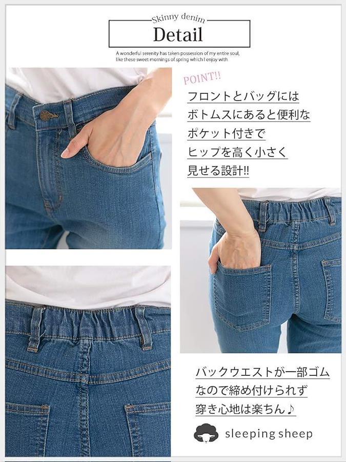 股上は深めで安心感があり、程よいストレッチの効いたデニム生地は脚をキュッと引き締め、細く、長く見せてくれます。