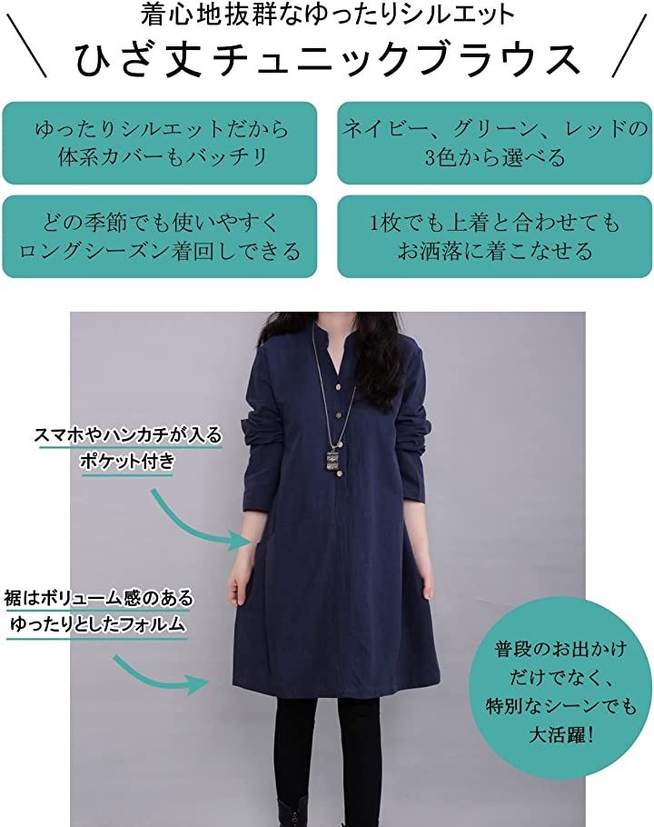 ・「様々なシーンで大活躍。」普段のお出かけやお散歩などで使うことができるのはもちろん、旅行などの特別なシーンでも大活躍する長袖チュニックです。