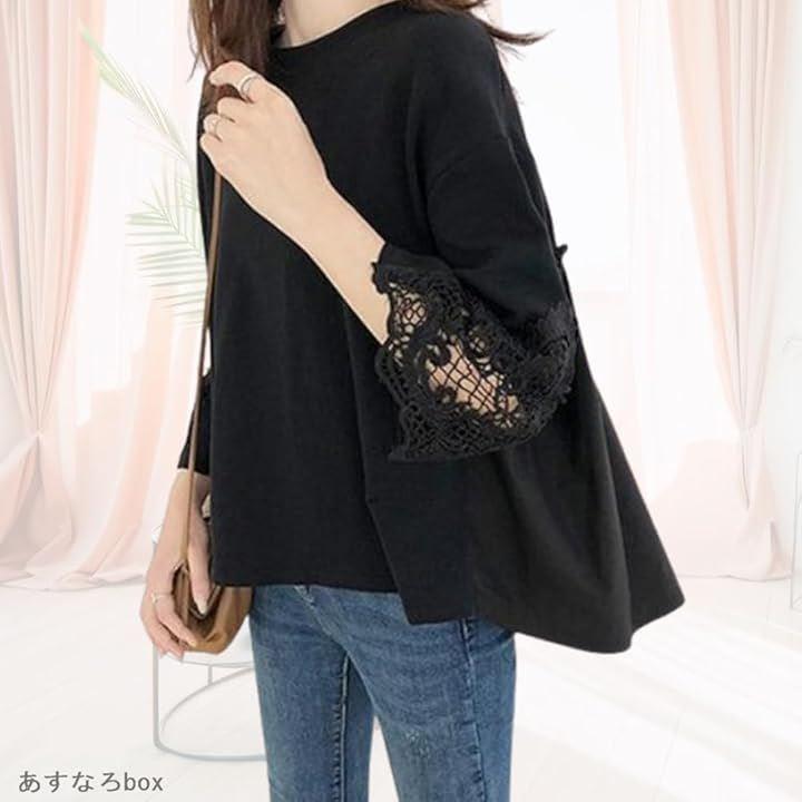 袖や胸元にあしらわれた繊細なレースが、程よい透け感を演出し、通勤やオフィスシーンでもきちんと感を損なわず着用できます。