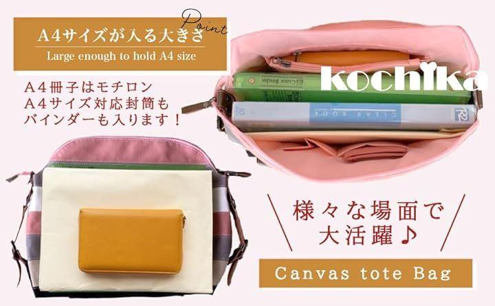 「大容量 キャンバストートバッグ」A4サイズの書類や雑誌はモチロン、A4対応封筒やA4バインダーも収納可能(2~3冊推奨)で、見た目より大容量❣メイン素材に丈夫な帆布(キャンパス)生地を採用。