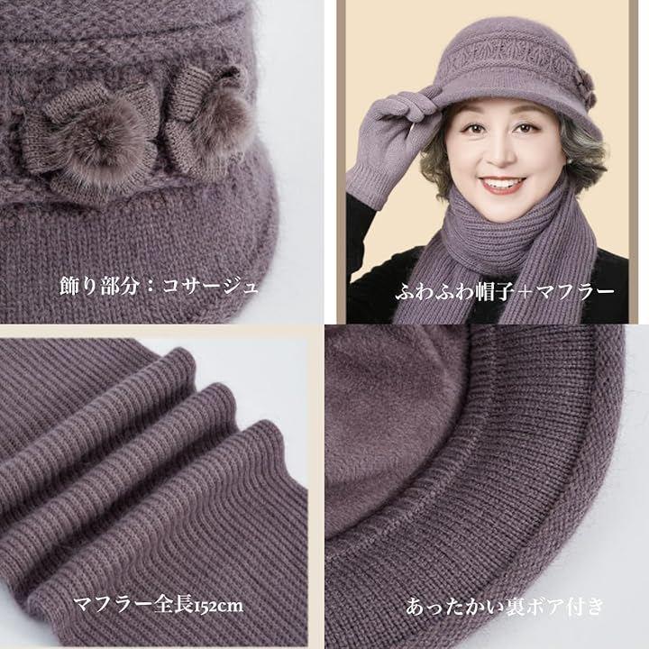 「デザイン」あったかいふわふわ帽子とマフラーのおしゃれな防寒マストアイテム(裏ボア付き)・折りたためるから持ち運び、外出先で便利・シンプル無地でワンポイントデザイン・家族への誕生日や記念日のプレゼント、ギフトにおすすめ