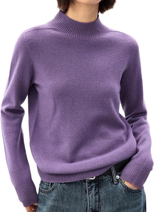 「シンプルなデザイン」大人カジュアルを演出するハイネックデザインのニットトップス。
