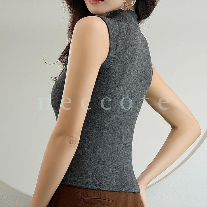 首元をきれいに見せてくれるハイネックのノースリーブ。