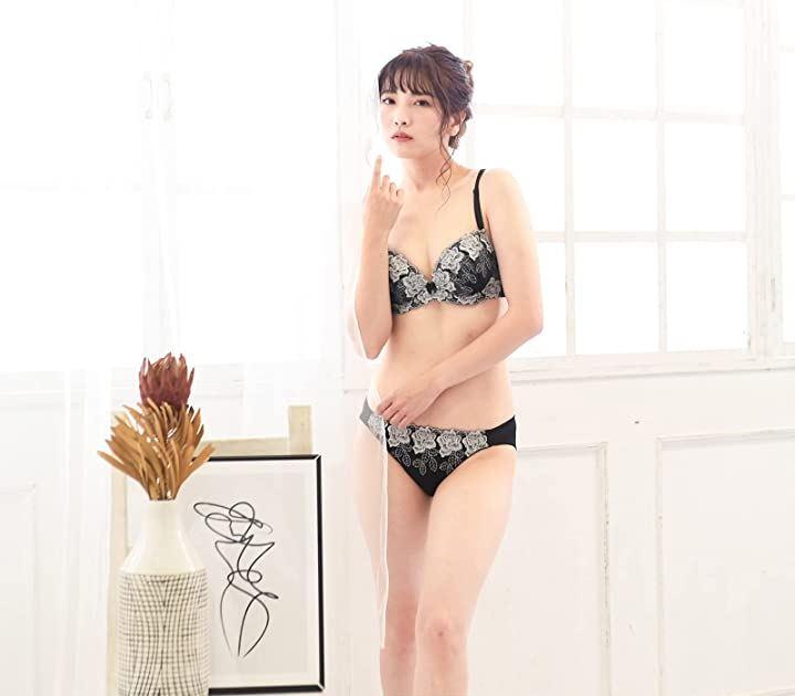 細やかな大輪のバラが、カップとショーツ全体に装飾されており、視線をぐっと引き付けます。