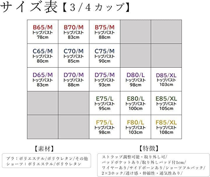 ストラップ調整可能・取り外し可/パッドポケットあり/取り外しパッド付1cm/ワイヤーあり/サイドボーンあり/透け感・伸縮性・通気性あり/2x3ホック/ショーツフルバック