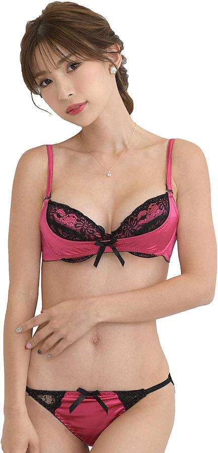 ビビットカラーがセクシーなブラ&ショーツセットになります