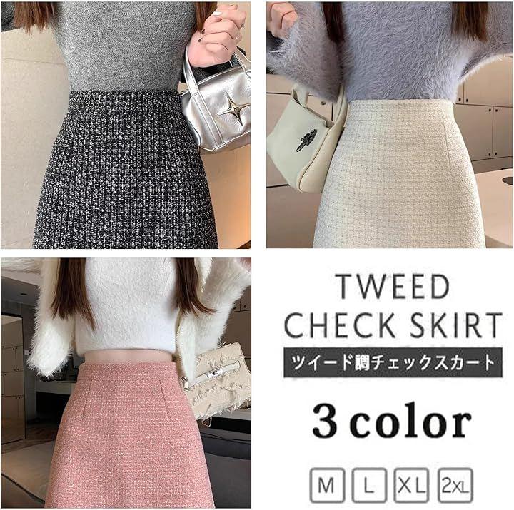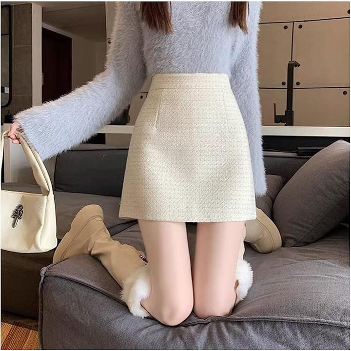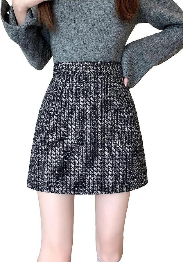 Women's Tweed-Style Casual A-Line Mini Skirt with Inner Pants, Cute Check Pattern, High-Waisted, Tight Pencil Style