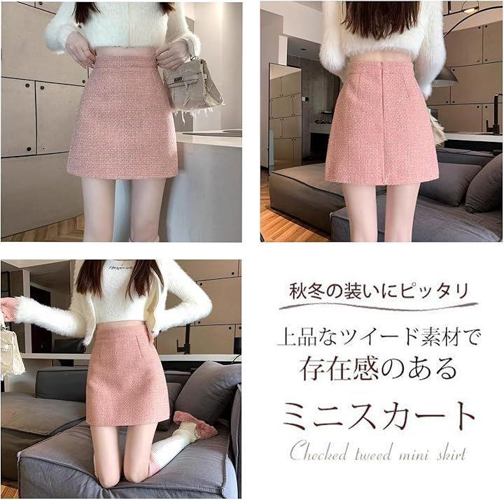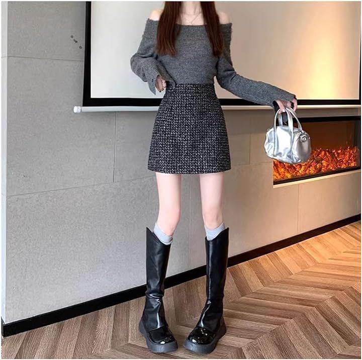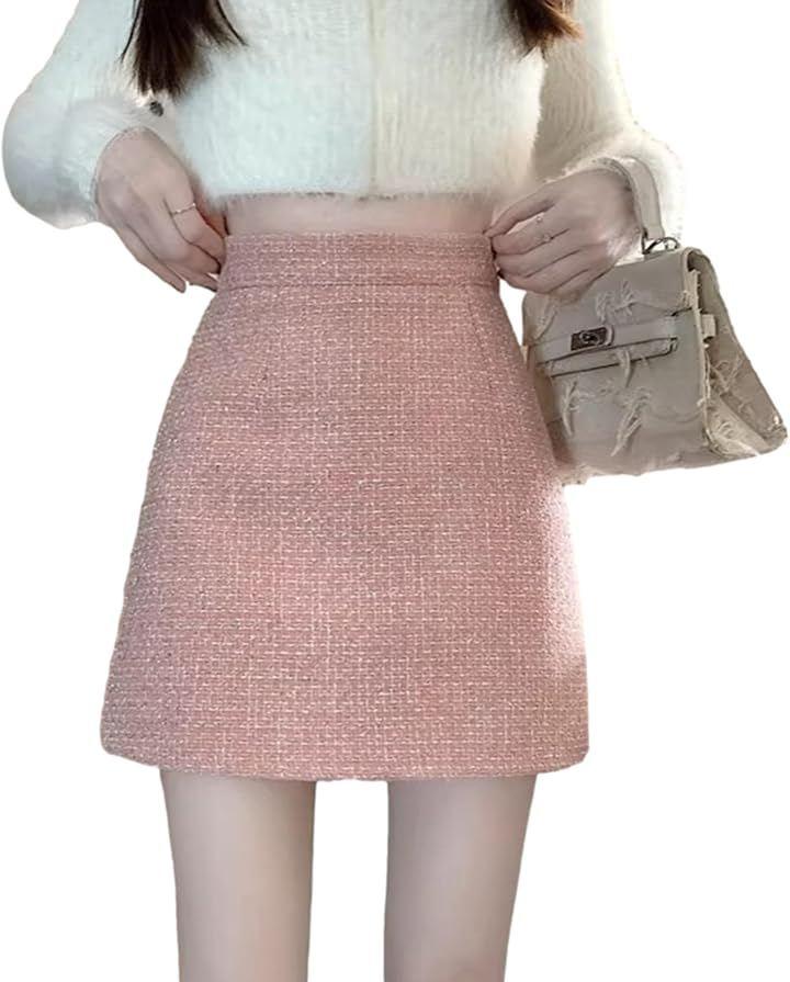Women's Tweed-Style Casual A-Line Mini Skirt with Inner Pants, Cute Check Pattern, High-Waisted, Tight Pencil Style