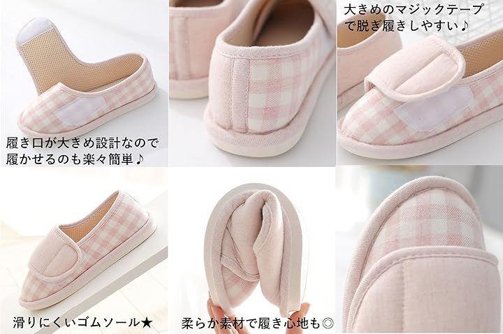 [ププレホロムア] レディース ルームシューズ 介護 リハビリ シューズ 入院 高齢者 靴 スリッパ 軽量 室内 履き 上履き