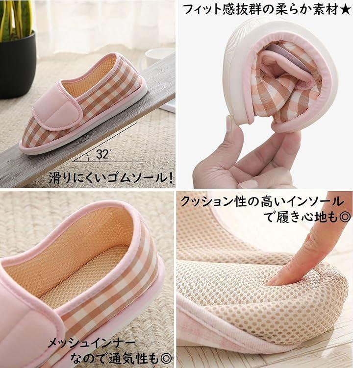 [ププレホロムア] レディース ルームシューズ 介護 リハビリ シューズ 入院 高齢者 靴 スリッパ 軽量 室内 履き 上履き