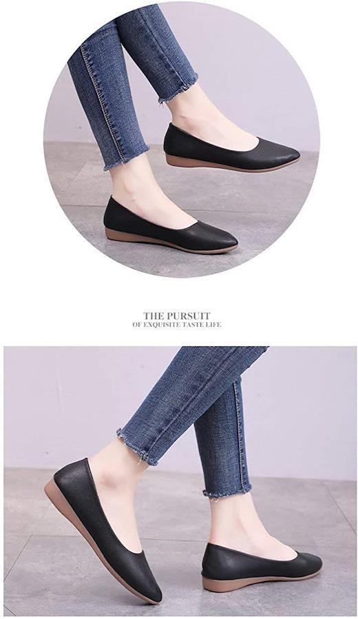 ・柔らかいフェイクレザーのシンプルで履きやすいローヒールのフラットパンプスです‼