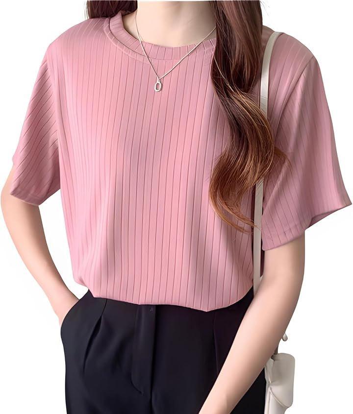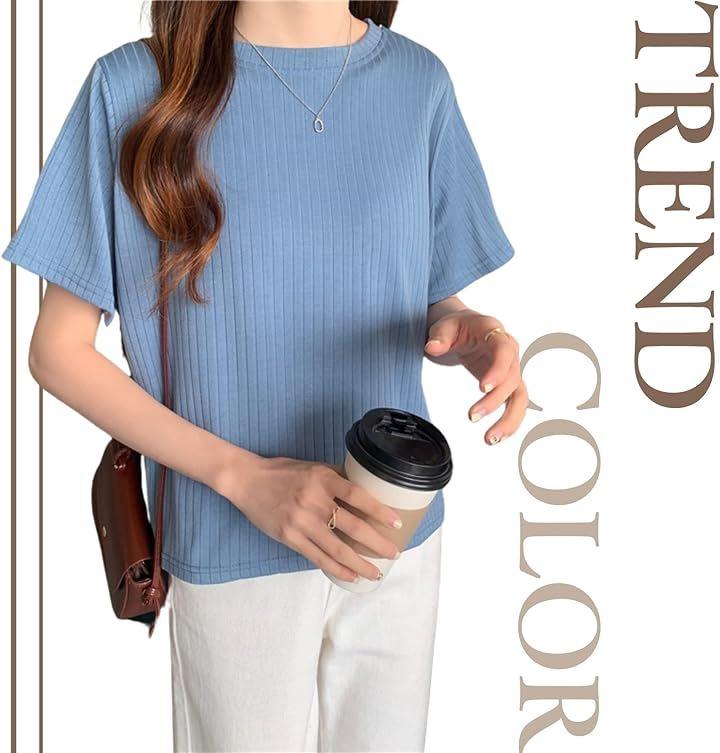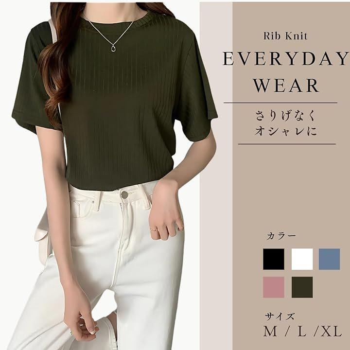 毎日着れる定番デザインの半袖クルーネックリブTシャツ。