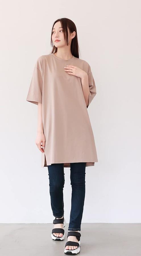 そんな柔らかなコットン素材の肌触りとストレッチのある優れた伸縮性も自慢で使い勝手のいいTシャツワンピです。