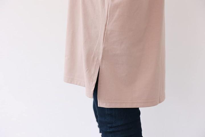 お尻が隠れる長めの着丈とゆったりとしたシルエットで、着やせ効果や体型カバーとして着用できます。