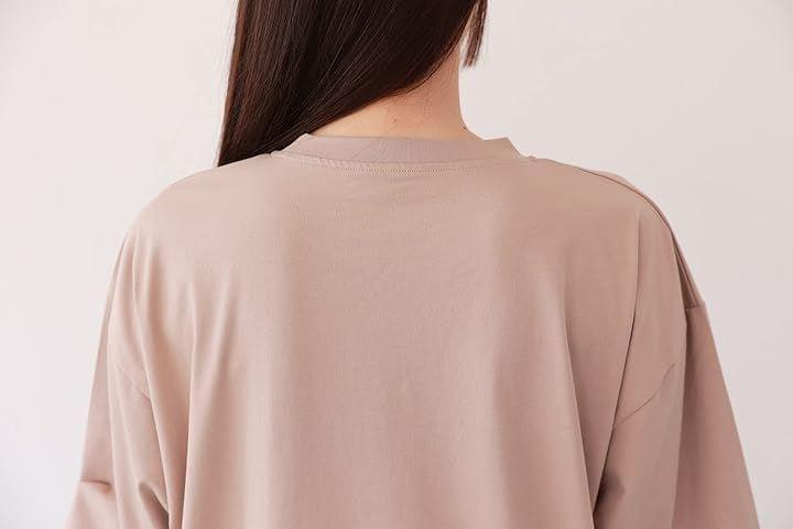 [サイズ]M・L・XL [寸法]M (日本サイズS-M) :バスト118cm 着丈85cm 袖丈23cm 肩幅58cm 袖口21cm アームホール23cm 裾幅116cm L (日本サイズM-L) :バスト124cm 着丈86cm 袖丈24cm 肩幅59cm 袖口22cm アームホール24cm 裾幅124cm XL(日本サイズXL-2XL):バスト132cm 着丈87cm 袖丈25cm 肩幅62cm 袖口23cm アームホール25cm 裾幅128cm [カラー]:ブラック・ホワイト・ピンク・ラテ・ブルーグレー [組成]コットン95% ポリウレタン5% [生産国]中国製