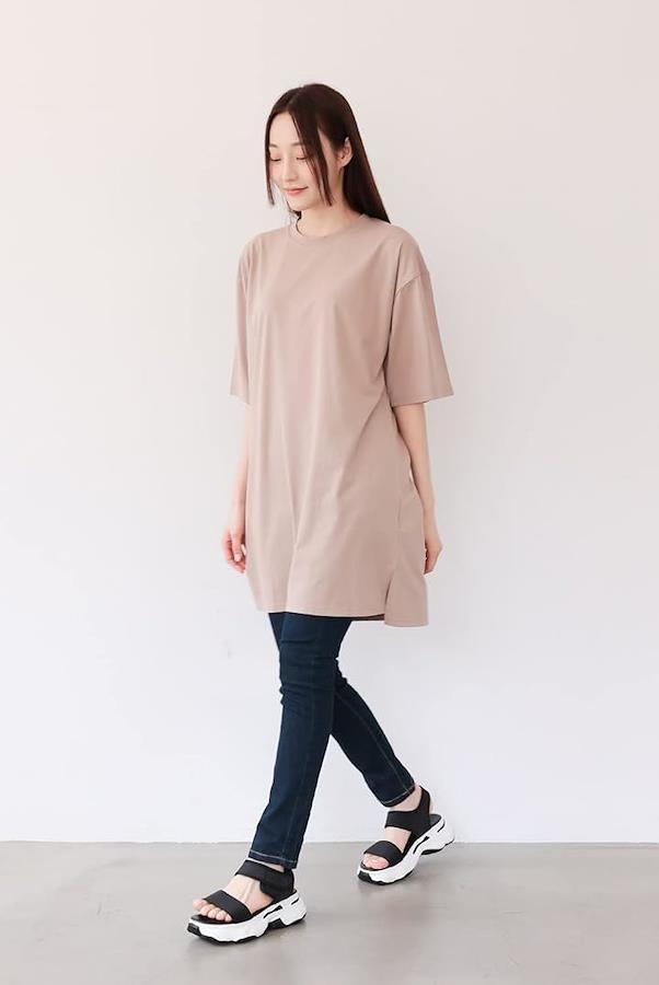 ダボっと一枚で着るだけで女性らしい華奢な体型を演出してくれるTシャツタイプのワンピースをご紹介します。ボクシーなシルエットがマニッシュでありつつもヌケ感がこなれたアイテム。