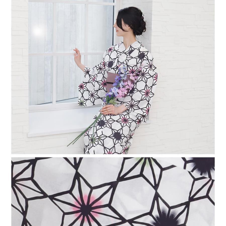 夏のイベントやおでかけにぴったりな仕立て上がり浴衣「麻の葉シンフォニー」。白地に映える麻の葉模様は、日本の伝統美を感じさせつつ、ピンクやグリーンが加わることで今っぽさもプラス。大人にもぴったりな上品かわいいデザインが魅力です。