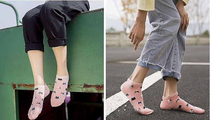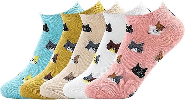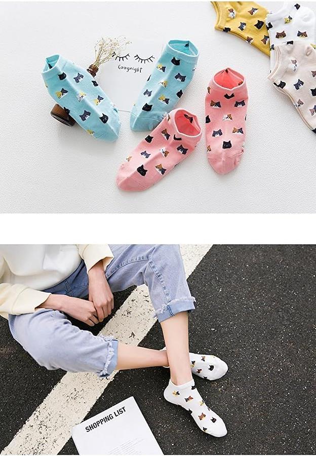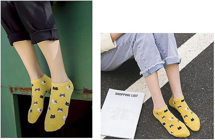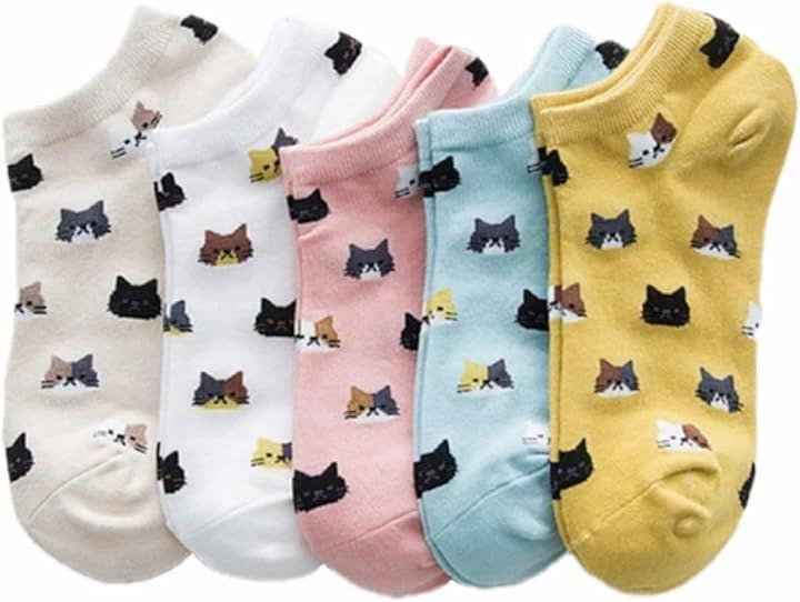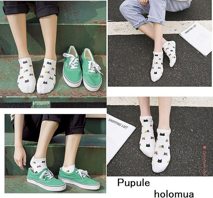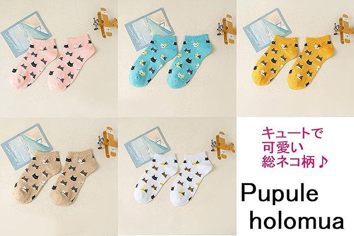 [Pupule holomua] レディース 猫柄 ソックス 猫 くつ下 くるぶし丈 スニーカーソックス ネコ 靴下 セット