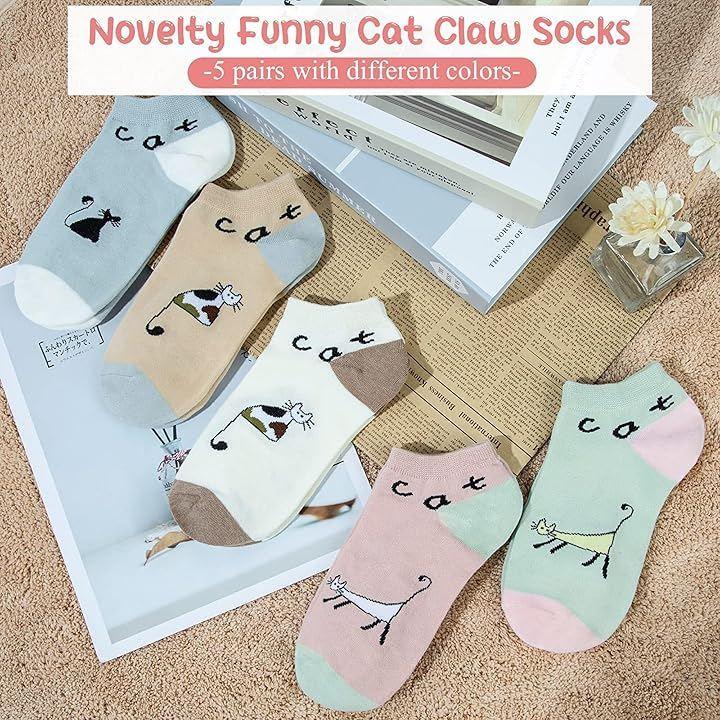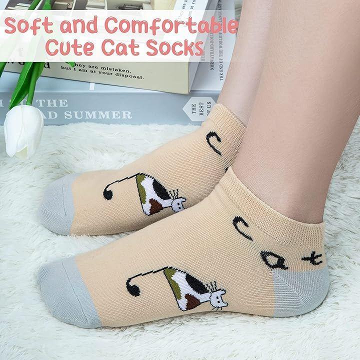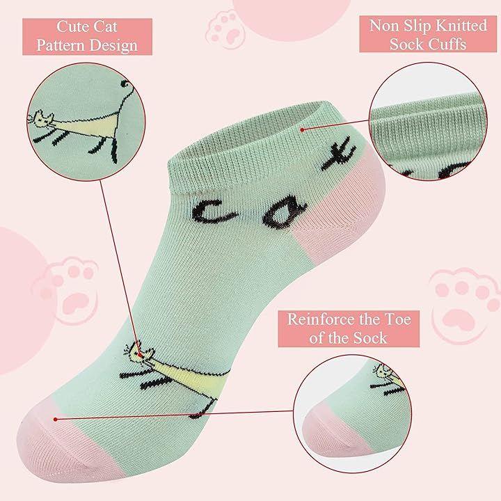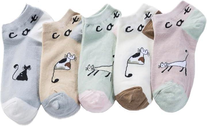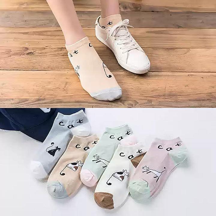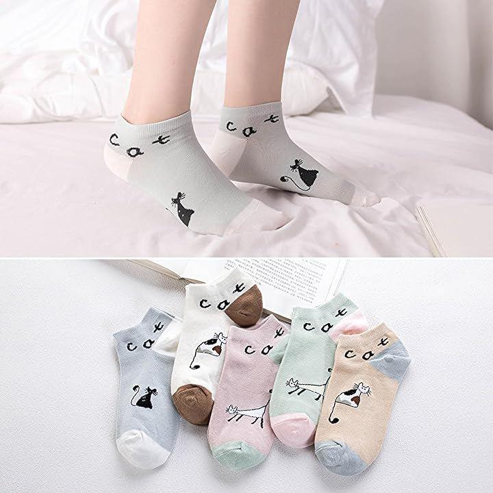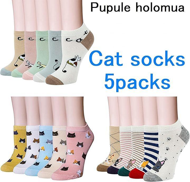 [Pupule holomua] レディース 猫柄 ソックス 猫 くつ下 くるぶし丈 スニーカーソックス ネコ 靴下 セット