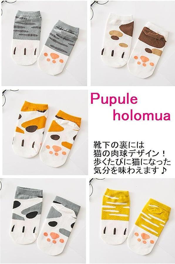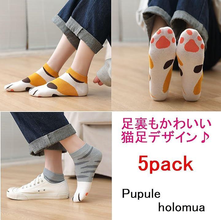 [Pupule holomua] レディース 猫柄 ソックス 猫 くつ下 くるぶし丈 スニーカーソックス ネコ 靴下 セット