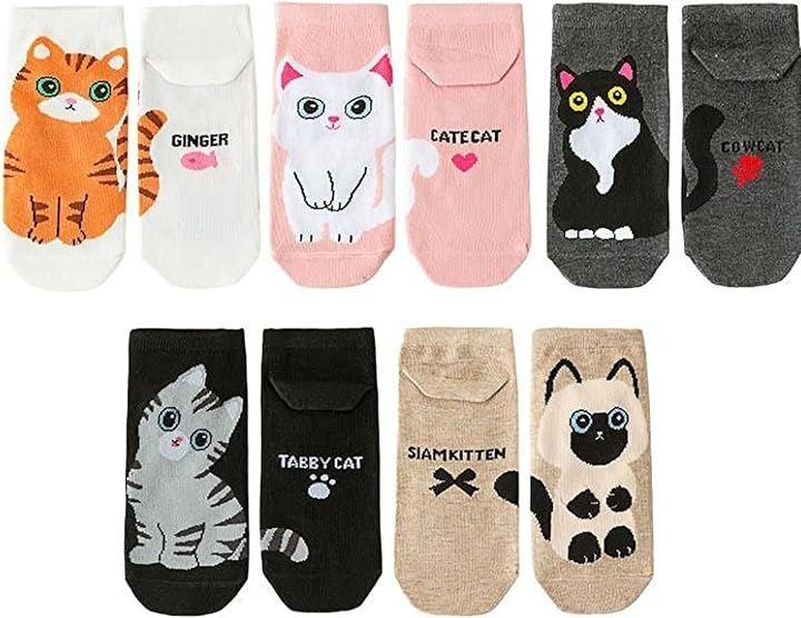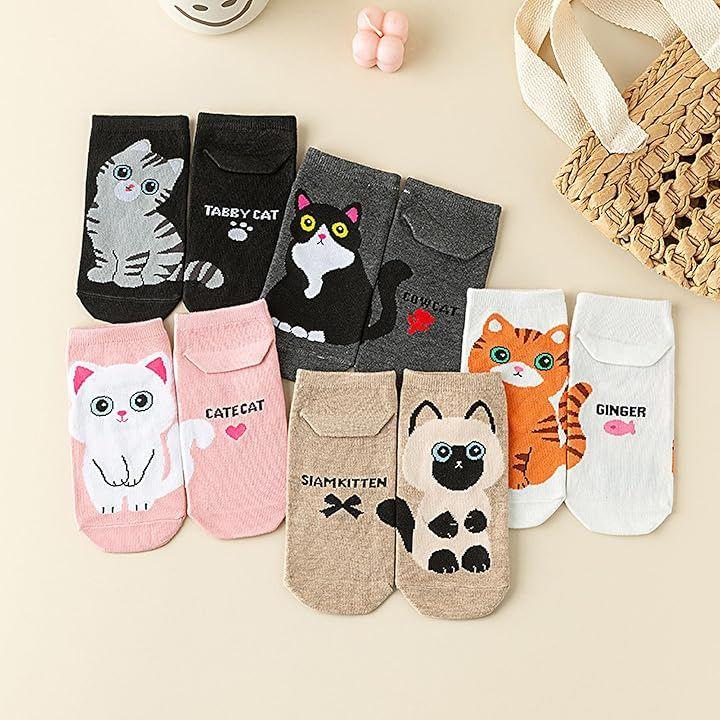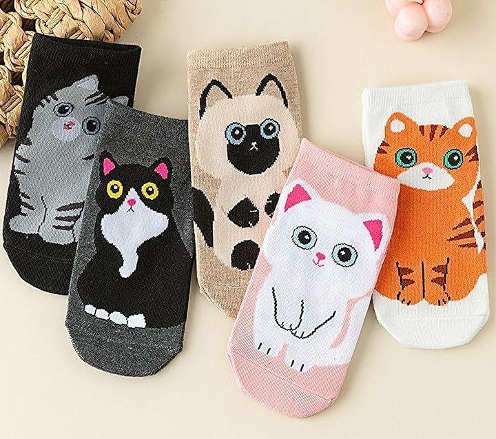 [Pupule holomua] レディース 猫柄 ソックス 猫 くつ下 くるぶし丈 スニーカーソックス ネコ 靴下 セット