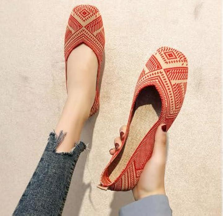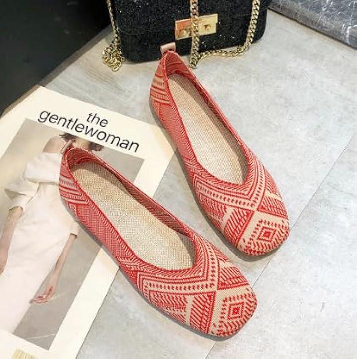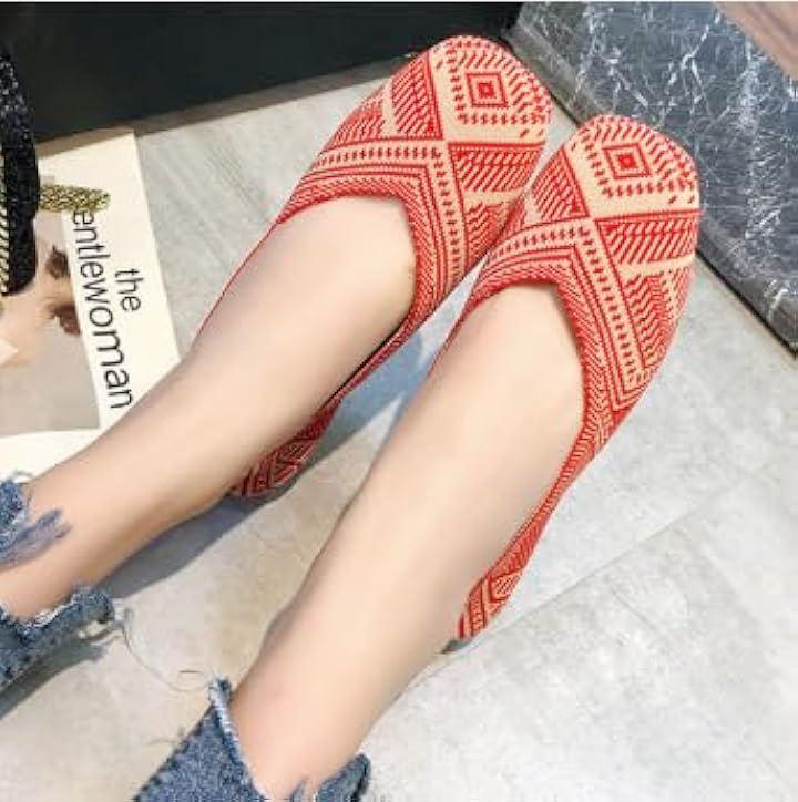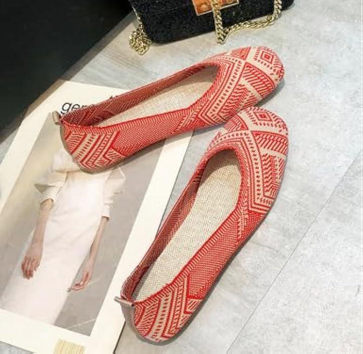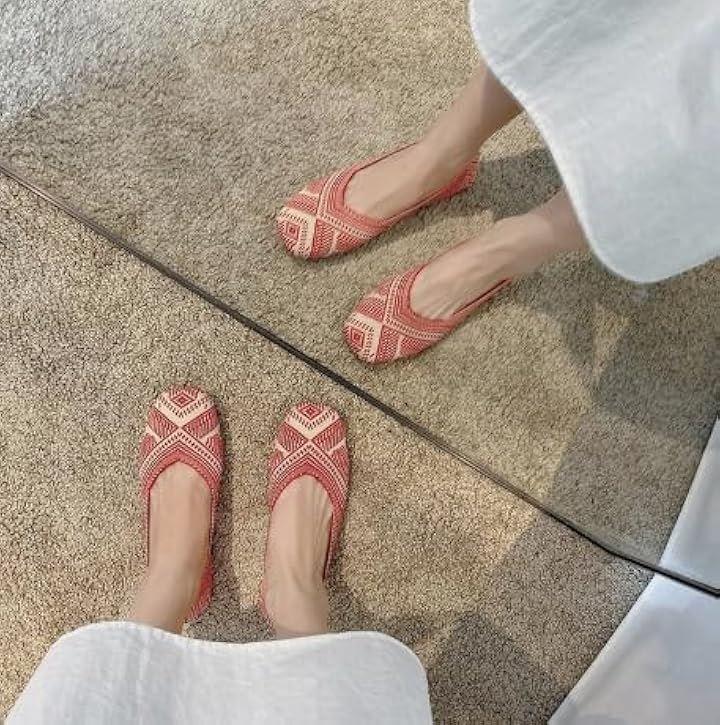 [ デザイン性:目を惹くエスニック格子柄で足元に個性をプラス ] 伝統的なエスニック模様を現代風にアレンジした格子柄が印象的なフラットパンプスは、シンプルなコーディネートに一点投入するだけで華やかな雰囲気を演出。