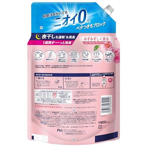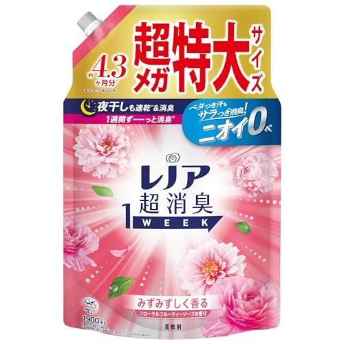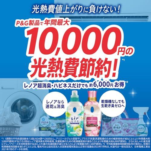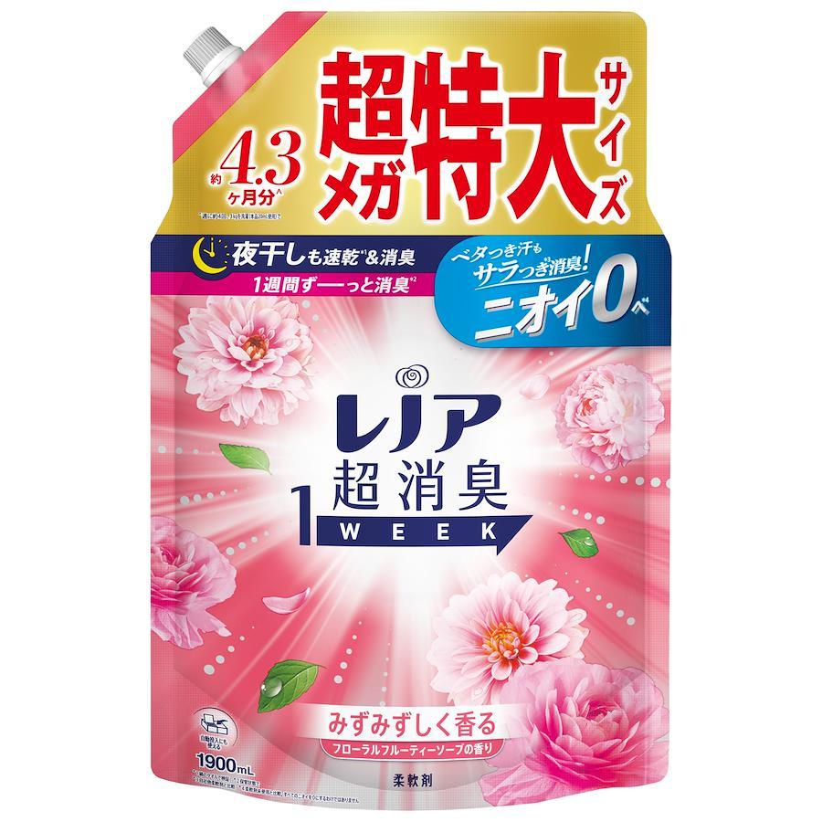 *1 綿のタオルで検証 *2 保管状態で *3 自社他柔軟剤と比較 *4 柔軟剤未使用と比較。すべてのニオイを0にするわけではありません *5 静電気を防ぐ効果による *6 すべての菌の増殖を抑えるわけではありません 新しくなったレノア超消臭1weekは、汗をかいた時のニオイはもちろん、ベタつきまで防げるようになりました(*1)。汗をかいてもさらっと吸収して速乾(*1)。しかも、何度汗をかいてもニオイ0へ(*2) *1 自社他柔軟剤と比較。 *2 柔軟剤未使用と比較。すべてのニオイを0にするわけではありません。 レノア超消臭1WEEKは、80%以上の消費者が実感した、1週間ずーっと続く消臭力(*1)。 かけっぱなしの洗面所のタオルや、ニオイが気になるけれど毎日は洗えない、シーツや枕カバーまで、1週間ずーっと爽やか(*1)。 *1 保管状態で レノアの消臭系柔軟剤は、みなさんのお洗濯のニオイ問題やお悩みを解決すべく、無臭化テクノロジーや1週間(*1)ずーっと続く消臭技術など、消臭効果に関する研究を重ねて来ました。おかげさまで、防臭タイプ柔軟剤の中で売上No.1。 *1 保管状態で レノア超消臭なら、夜干しでも速乾(*1)&消臭。消臭成分が浸透、夜の間にじっくり消臭するから、夜干しなのに、天日干し以上のさわやかさに。 *1 綿のタオルで検証。 選べる6種類の香り。 お求めの消臭力、香りに合わせて、家族で使える6種類の香りをご用意しています。フローラルフルーティーソープの香りは、甘すぎず爽やかな、ふんわり香るフローラル。 レノアの柔軟剤は、ドラム式洗濯機や自動投入洗濯機でもお使いいただけます!詳細の使用方法や使用量は、製品裏の説明をご覧ください。
