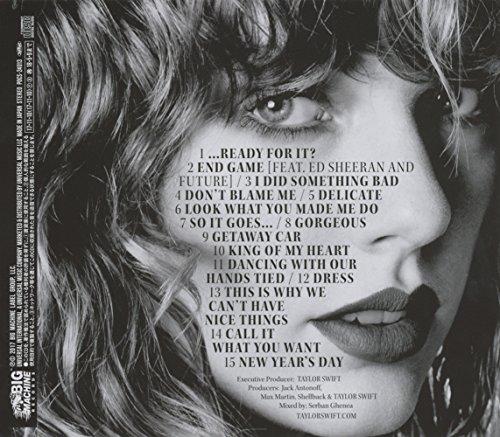 アルバム収録楽曲 【CD】1. …レディ・フォー・イット? / ...Ready For It?2. エンド・ゲーム feat. エドー・シーラン&フューチャー / End Game feat. Ed Sheeran And Future3. アイ・ディド・サムシング・バッド / I Did Somthing Bad4. ドント・ブレイム・ミー / Don't Blame Me5. デリケート / Delicate6. ルック・ホワット・ユー・メイド・ミー・ドゥ~私にこんなマネ、させるなんて / Look What You Made Me Do7. ソー・イット・ゴーズ… / So It Goes...8. ゴージャス / Gorgeous9. ゲッタウェイ・カー / Getaway Car10. キング・オブ・マイ・ハート / King Of My Heart11. ダンシング・ウィズ・アワ・ハンズ・タイド / Dancing With Our Hands Tied12. ドレス / Dress13. ディス・イズ・ホワイ・ウィ・キャント・ハヴ・ナイス・シングス / This Is Why We Can't Have Nice Things14. コール・イット・ホワット・ユー・ウォント / Call It What You Want15. ニュー・イヤーズ・デイ / New Year's Day