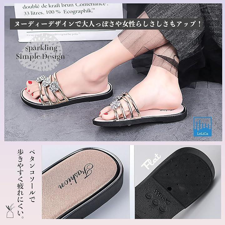 安定感があるフラットサンダルは歩きやすく、軽量で柔軟性や通気性もよく、底には滑り止め加工がされて、足への負担を軽減する、一日中に履いても疲れが感じないペタンコサンダルです。