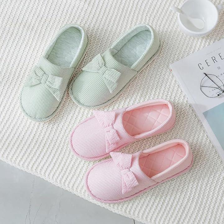 Relica Ribbon Lightweight Room Shoes/Slippers for Indoor Use with Heels, Non-Slip, and Easy to Walk in for Women