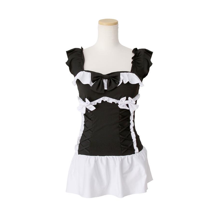胸元には大きめリボンをあしらい、ウエスト部分にはレースアップ風デザインで細見江と可愛さを両立♪