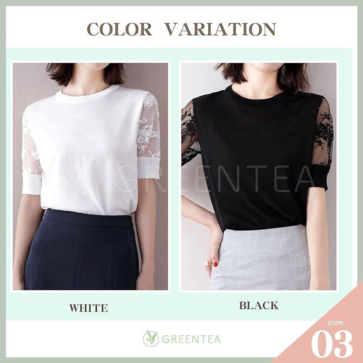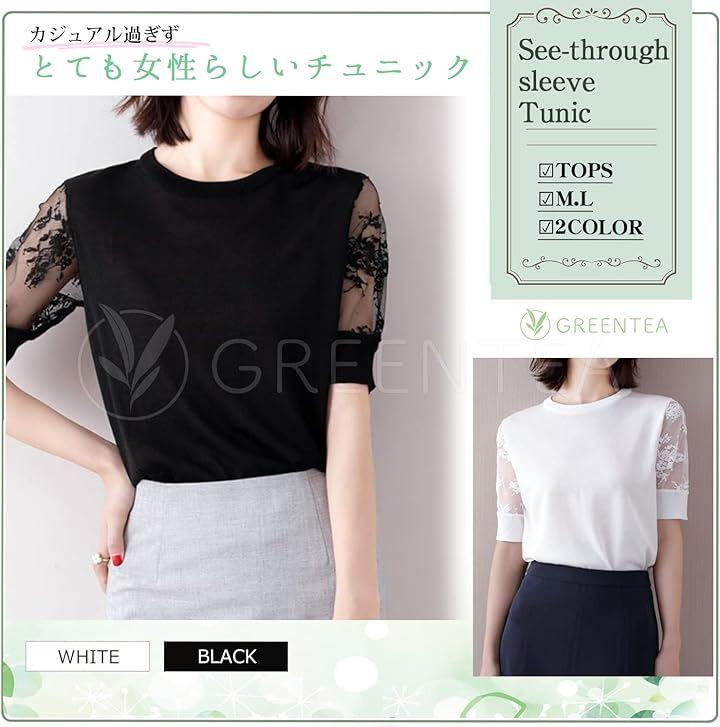 Lace sleeve tops for summer, short sleeves, see-through sleeves, women's