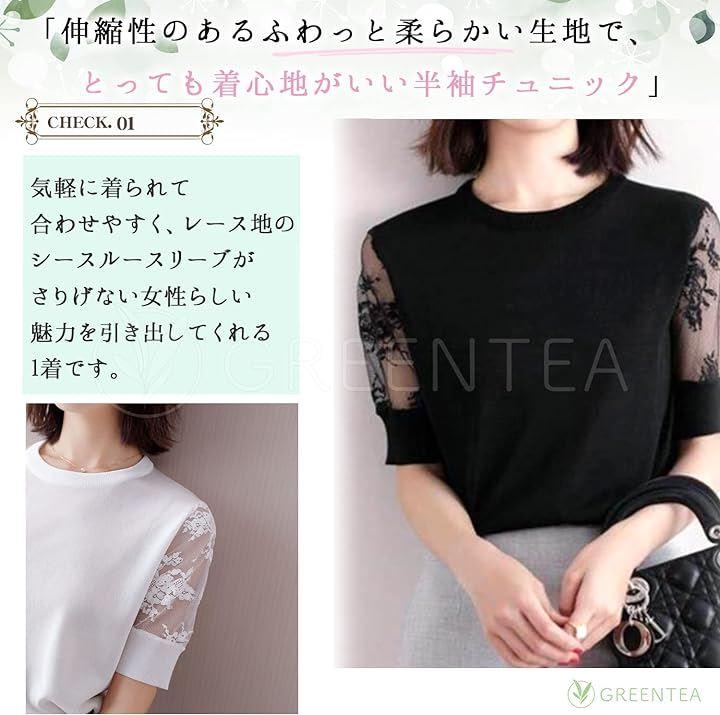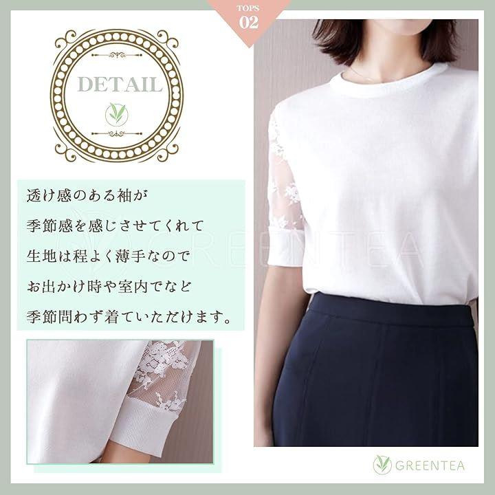 気軽に着られて合わせやすく、レース地のシースルースリーブがさりげない女性らしい魅力を引き出してくれる1着です。