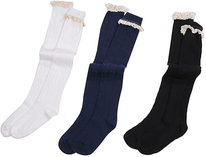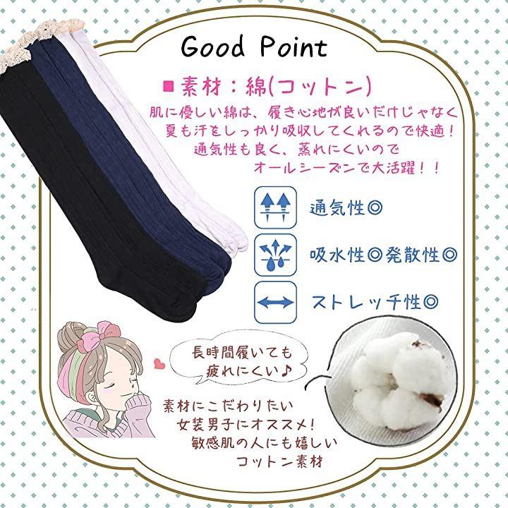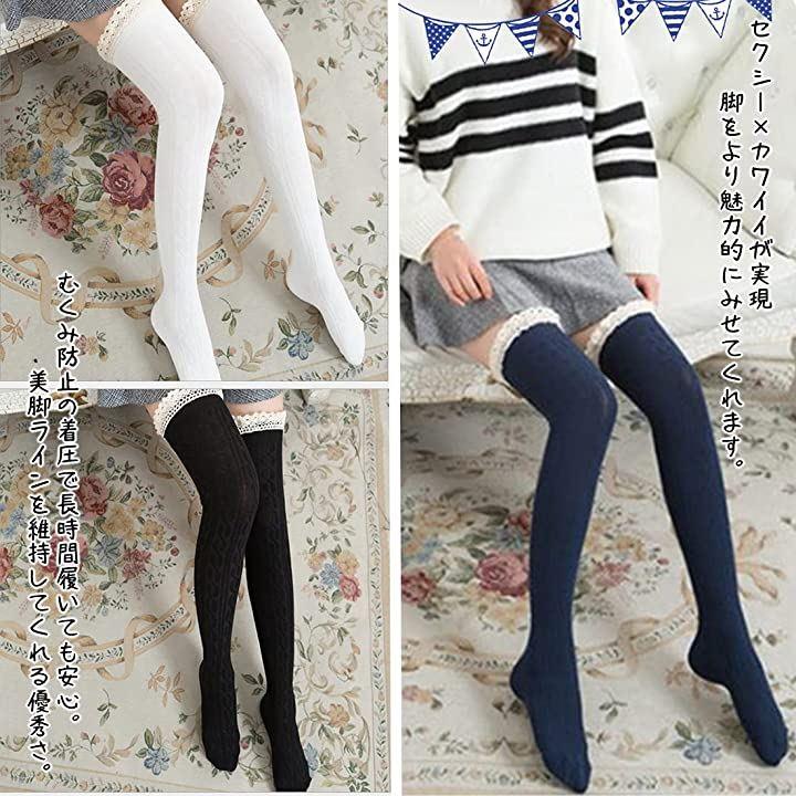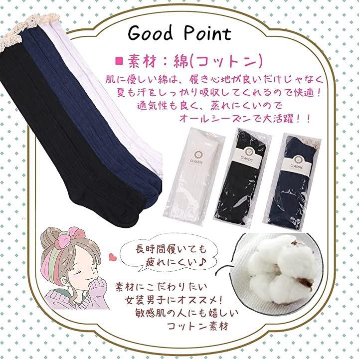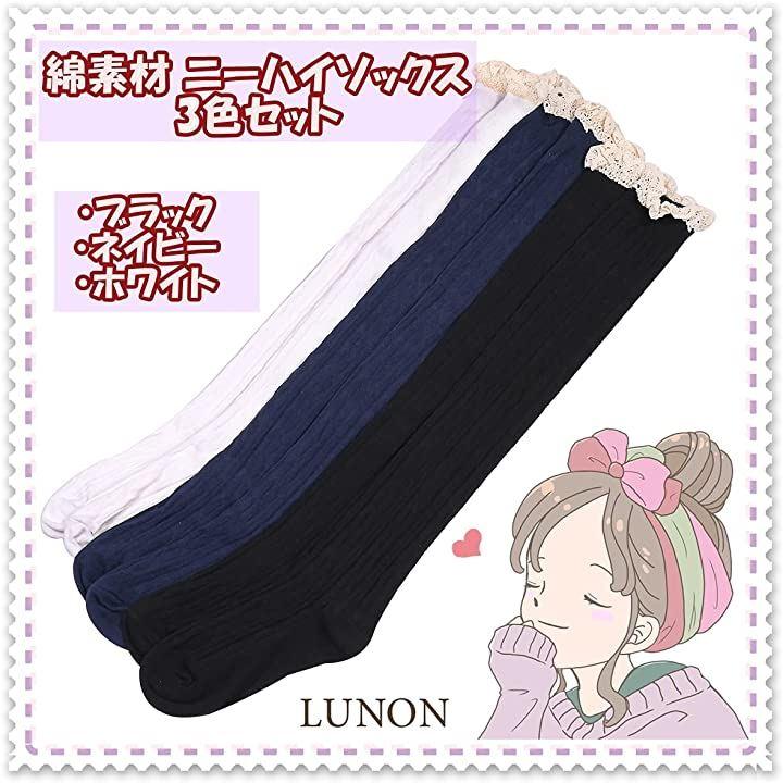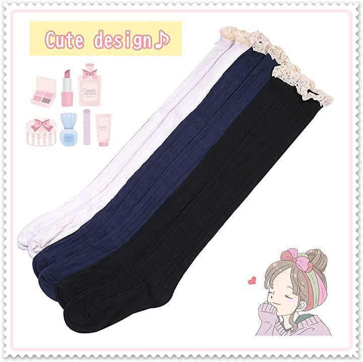 ・セット内容:レース付 ニーハイソックスx3組(黒、白、紺)