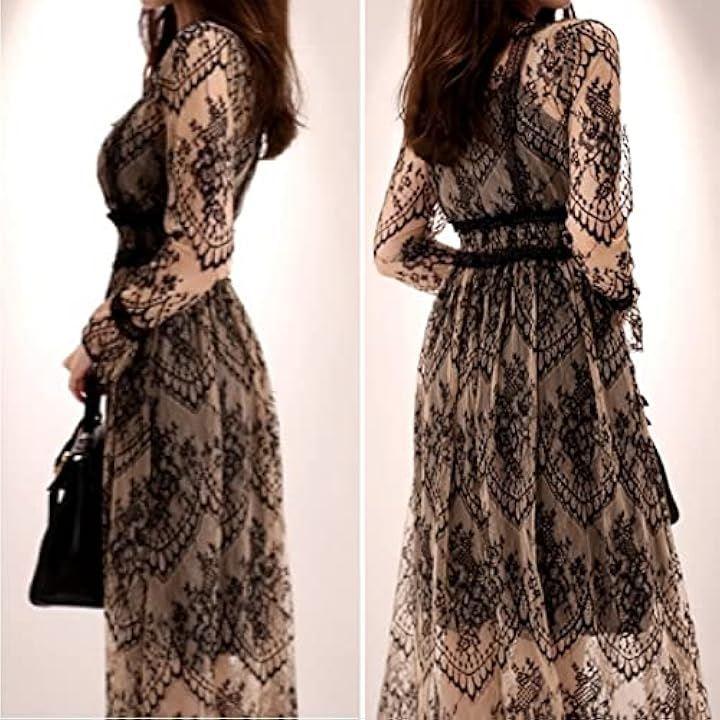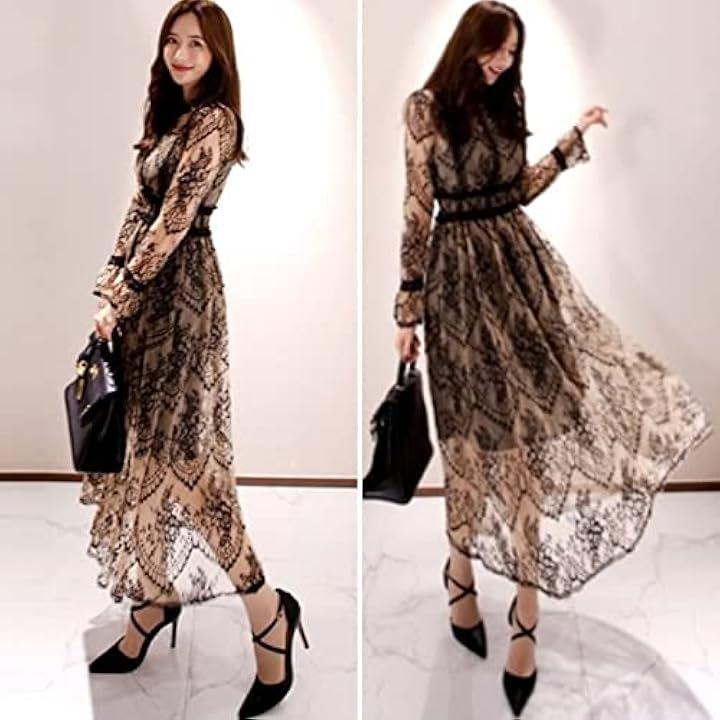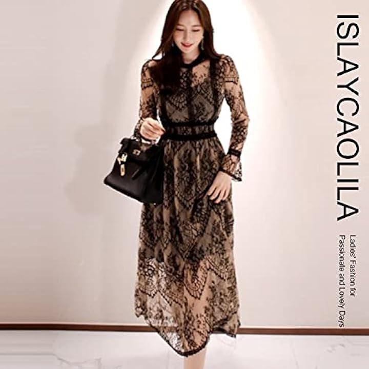 透け感たっぷりの総レースで高級感抜群、ロマンティックなムードが漂うワンピース、パーティードレスです。