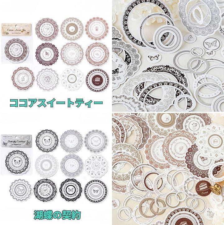 まるで精巧なレース編みのようなパターンや、花、蝶、リボンなどの可愛らしいモチーフが描かれており、異なる色合いとデザインで、多様な表現が楽しめます。