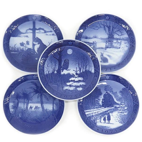 ロイヤルコペンハーゲン ROYAL COPENHAGEN 食器 イヤープレート 1970年代 10枚セット 陶磁器 ブルー×ホワイト ヴィンテージ 北欧 飾り皿 絵皿 1970~1979 メンズ レディース ユニセックス定番 人気 美品 【中古】
