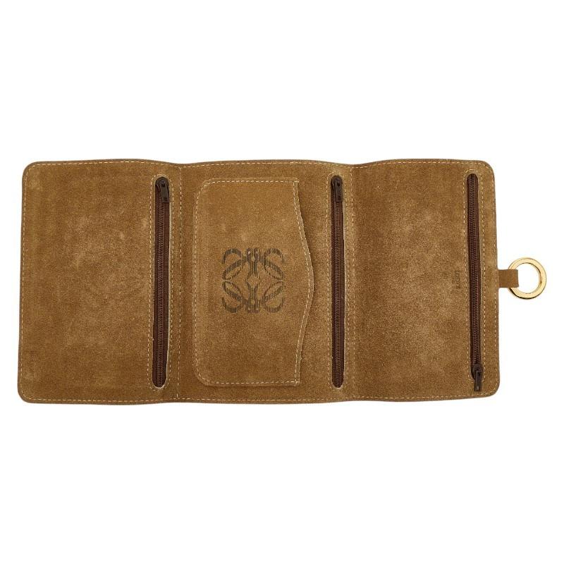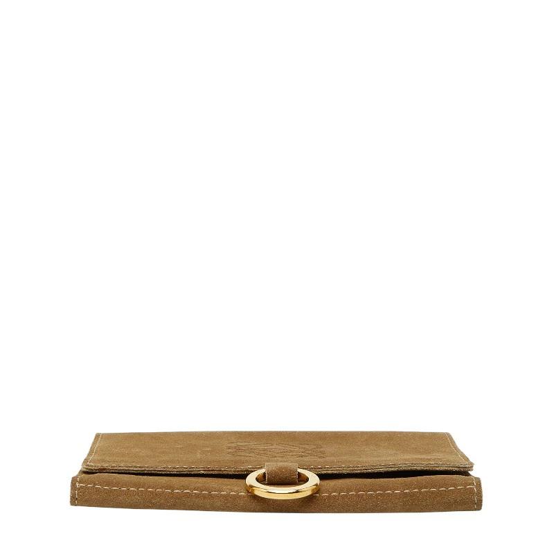 - ロエベ アナグラム ポーチ 三つ折り財布 ベージュ スウェード レディース LOEWE 【中古】