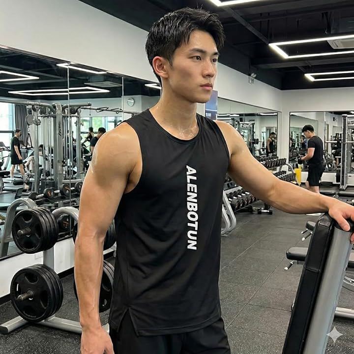 Men's Logo Tank Top, Sleeveless, Sweat-Wicking, Quick-Drying, Sportswear for Strength Training, Gym, Fitness, Running, Lightweight, Breathable, Mesh, Cooling Touch, Summer Shirt, U-Neck, V-Neck, Crew Neck