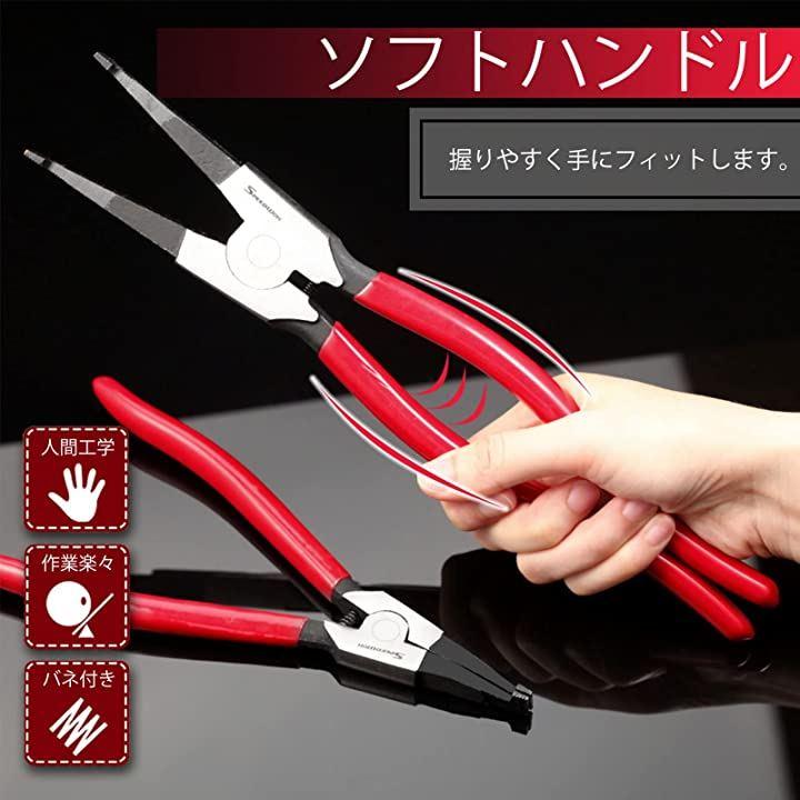 ・「用途」スナップリングとは異なり、穴の開いていないロックリング(C型リング)の脱着、自動車のトランスミッション・ドライブシャフトの分解・整備に便利なツールです。