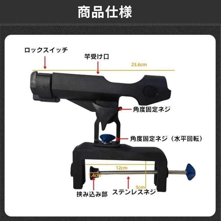 「回転自由」360度角度調整可能で、クランプ開口部が大きいので、様々な釣場に適し、縦付け、横付けが切り替え可能なので、お好きな位置に、角度が自由自在に調整できます。